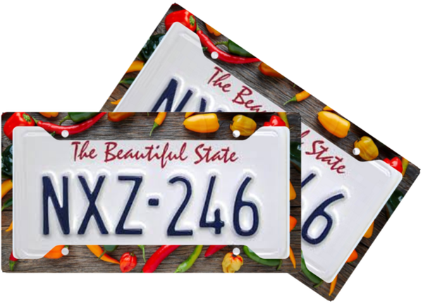 Spice up your ride! This vibrant license plate frame features a bold pepper design that adds a dash of personality to any vehicle. Whether you're a hot sauce lover, garden grower, or just someone who likes a little flair, this frame brings heat and charm to your front or back plate.